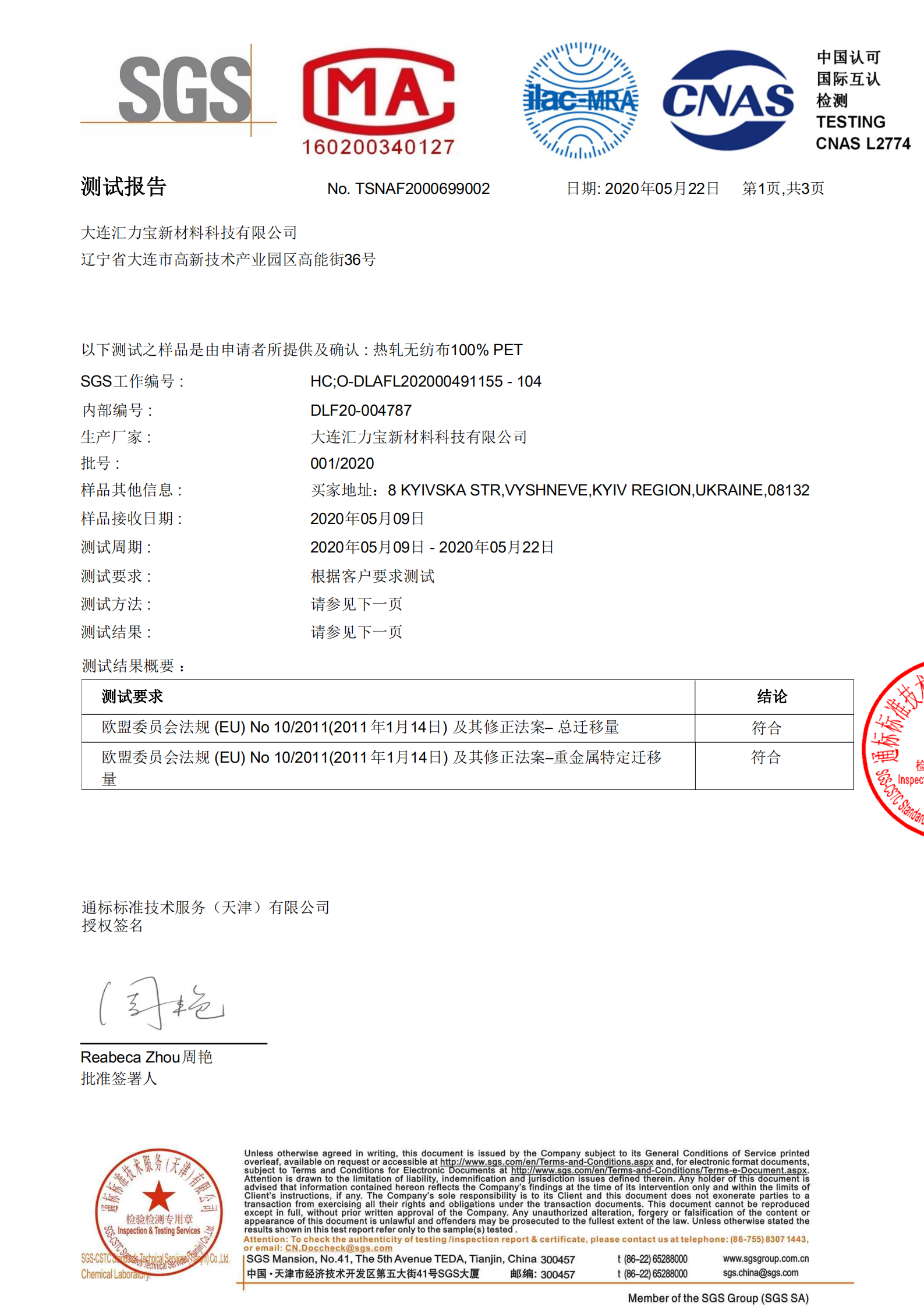 SGS檢測報告