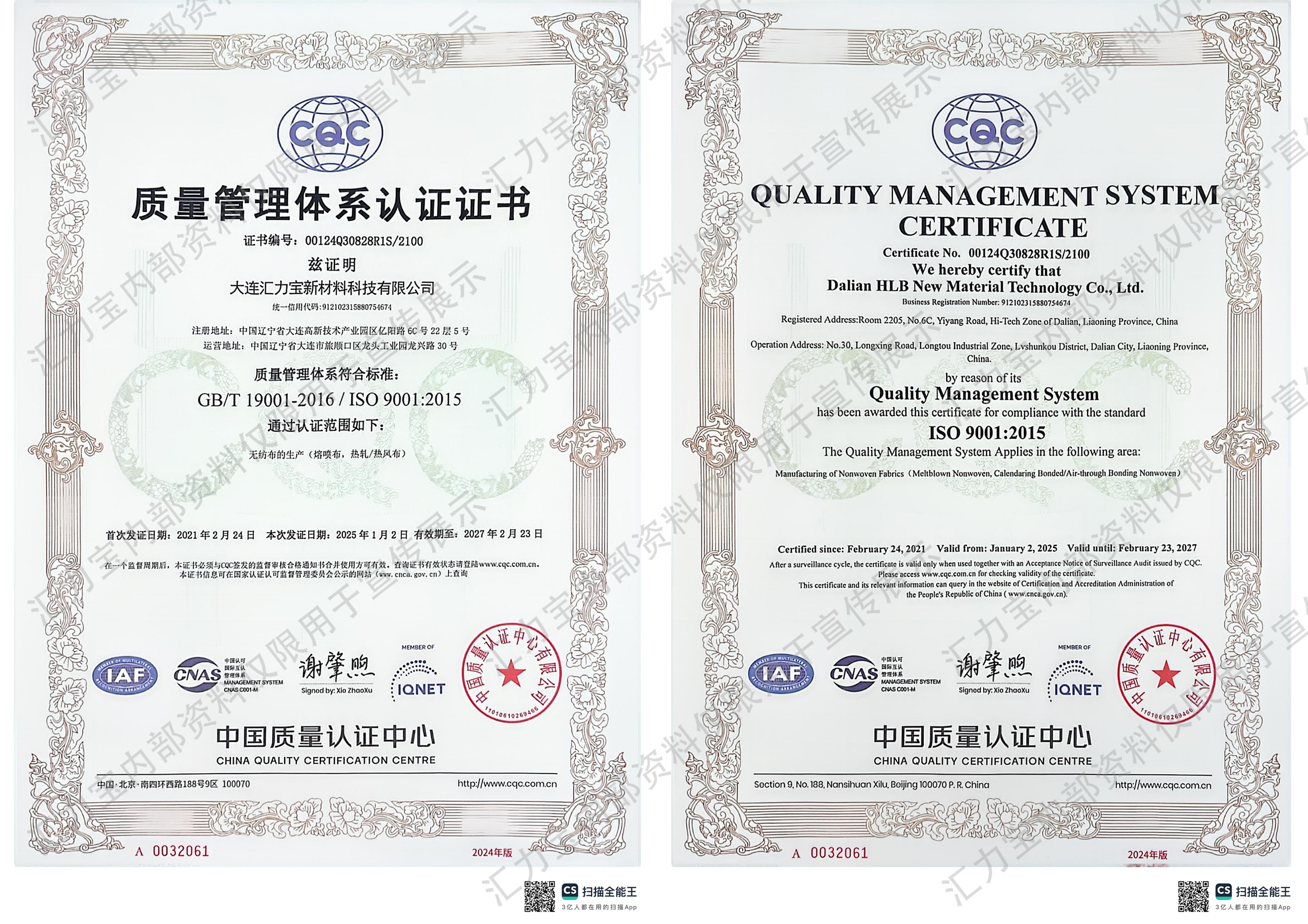 ISO質(zhì)量管理體系認證證書